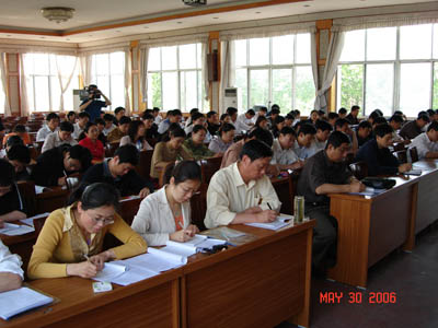 市委組織部副部長、市人事局局長王寶善同志講話                             培訓班學員認真聽課