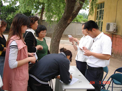 考試在膠南市委黨校舉行                                  工作人員核對考生身份