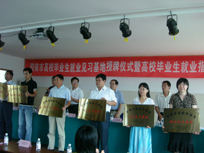8月7日,我市舉行高校畢業(yè)生見習基地授牌儀式,美泰科技(青島)有限公司、膠南市糖酒副食品有限公司、青島瑯琊臺集團股份有限公司、青島康大食品有限公司、齊魯證券公司膠南營業(yè)部、青島德盛利機械制造有限公司、青島興程人力資源有限公司、中國人民人壽保險股份有限公司膠南支公司8家企業(yè)被授予膠南市首批高校畢業(yè)生見習基地,至少為畢業(yè)生能提供270個見習崗位。