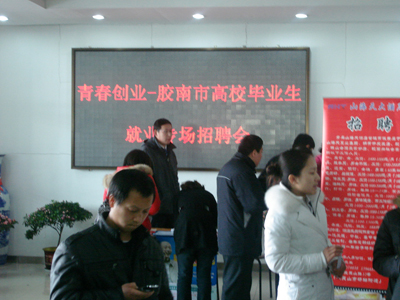 為促進畢業生就業,為畢業生求職和用人單位招才搭建交流平臺,市人事局、團市委于正月十七在市人才中心聯合舉辦了青春創業—膠南市高校畢業生就業專場招聘會。本次洽談會共有海爾電子、環球集團、海王紙業等88家企業進場招聘,提供機械、管理、文秘、營銷等專業崗位1700多個,有近2000名求職人才參會,達成初步意向的有近1000名,洽談會呈現供需兩旺的局面。